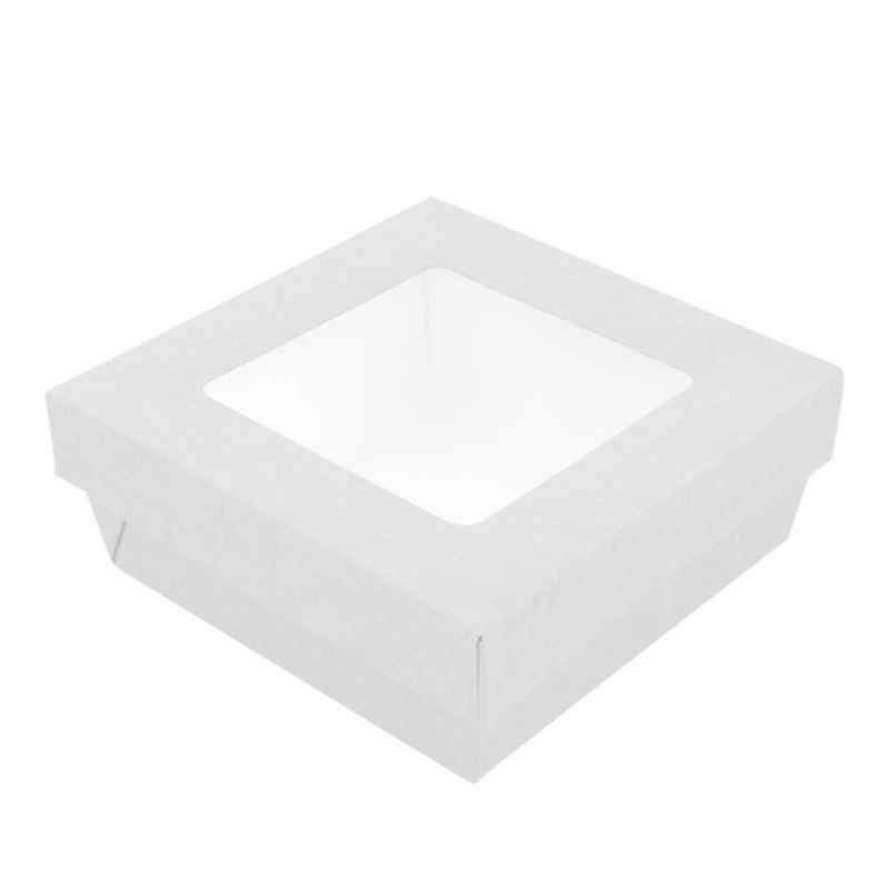 Купить Ланч-бокс с крышкой с окном бумажный 500 мл, белый 12*12*5 см, (1упаковка= 25 шт) GP